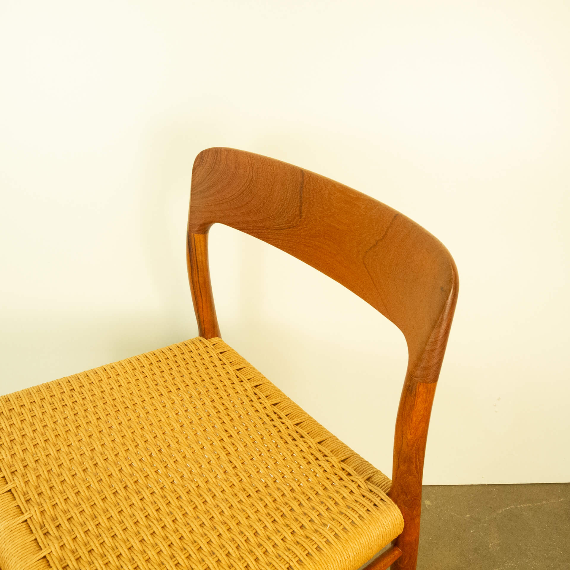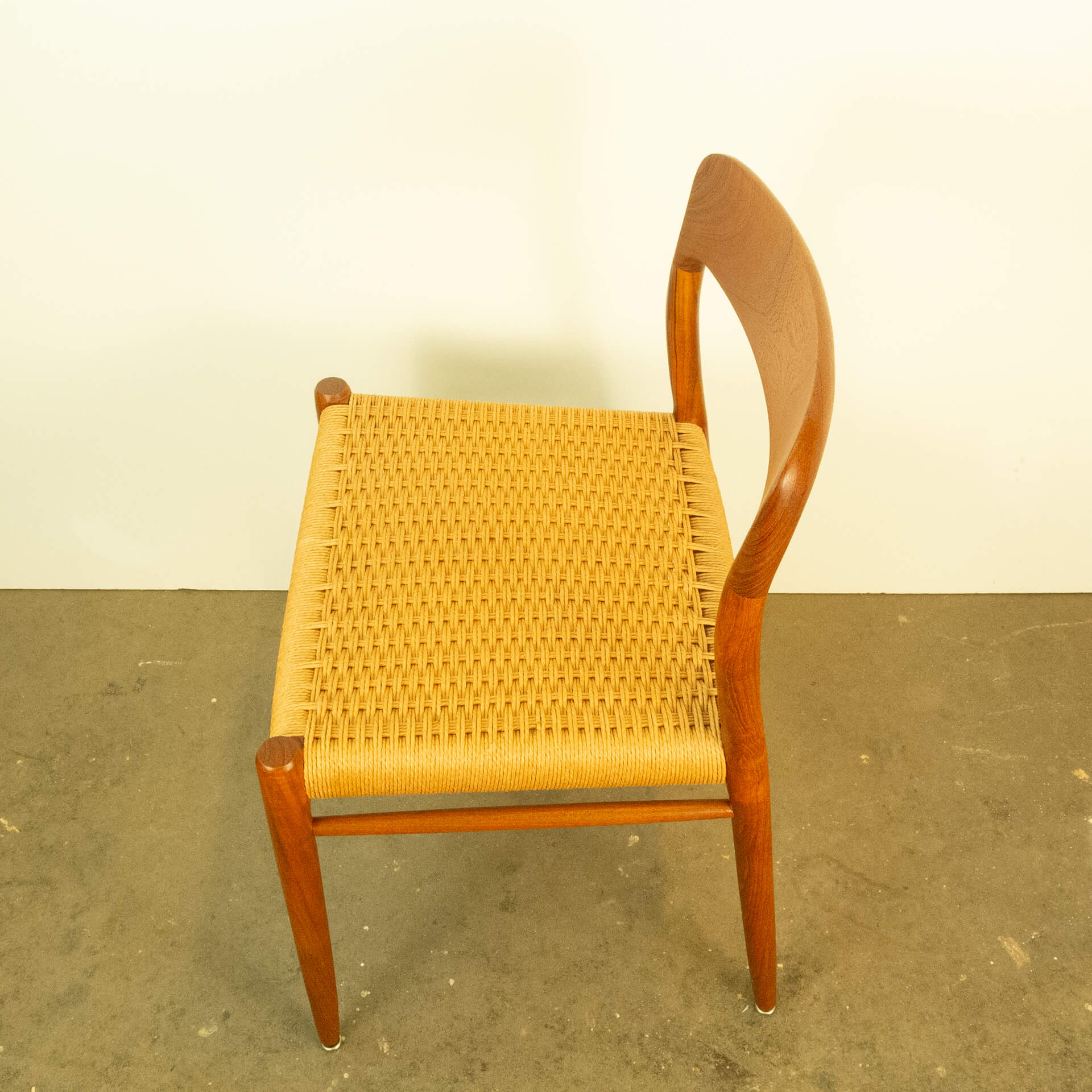 The frame is made of solid teak, and the seat (height: 46 cm) is made of waxed paper cord.