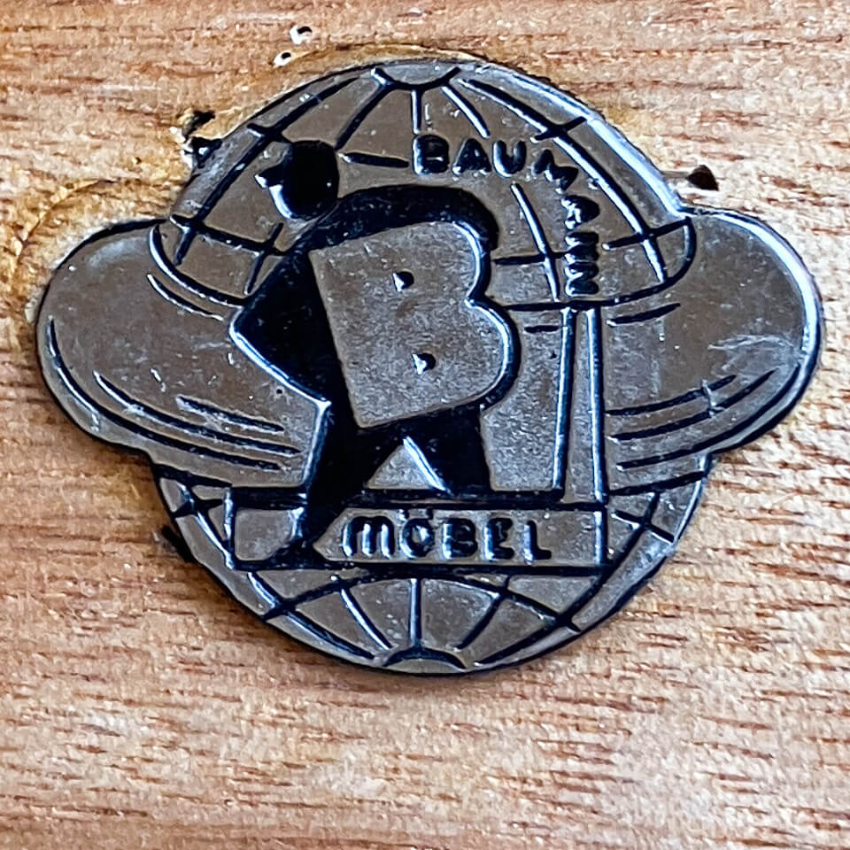 Oak kitchen buffet with iconic red Resopal top from Baumann. Typical of the 1960s, it features cabinets and drawers as well as four original utensil holders and a compartment for storing supplies – practical and decorative details.