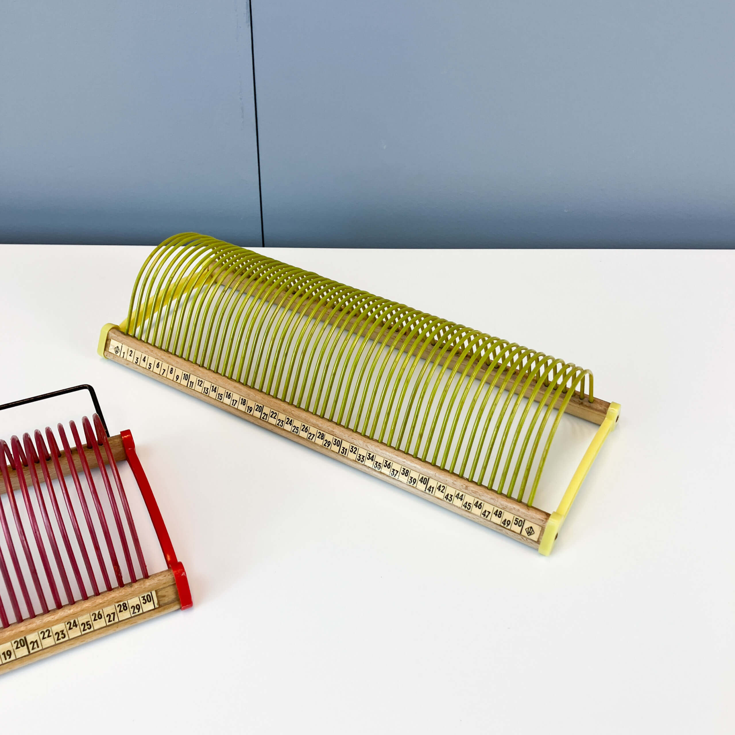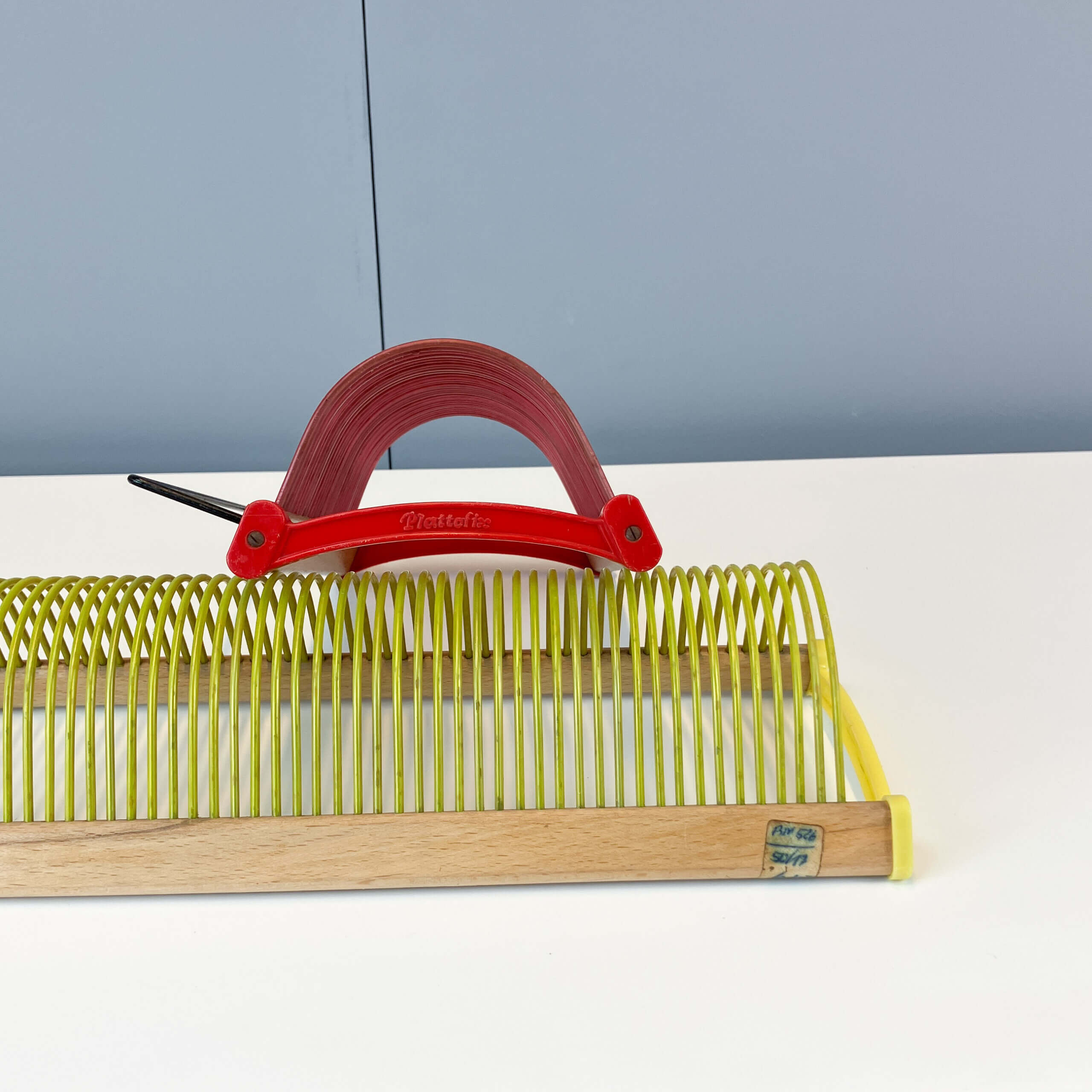 Made from beech slats with plastic connectors and coated wire – robust, lightweight, and typical of 70s design.
