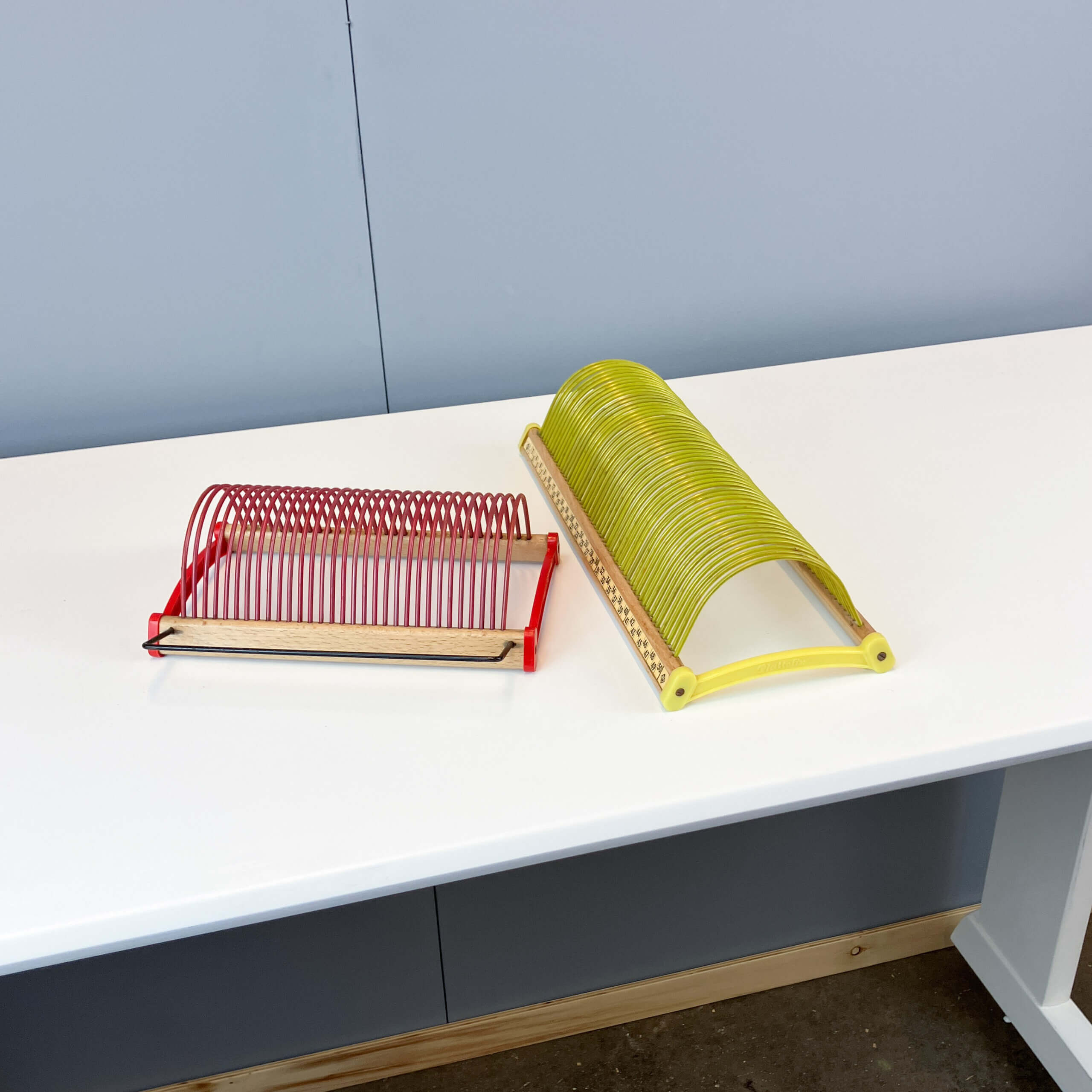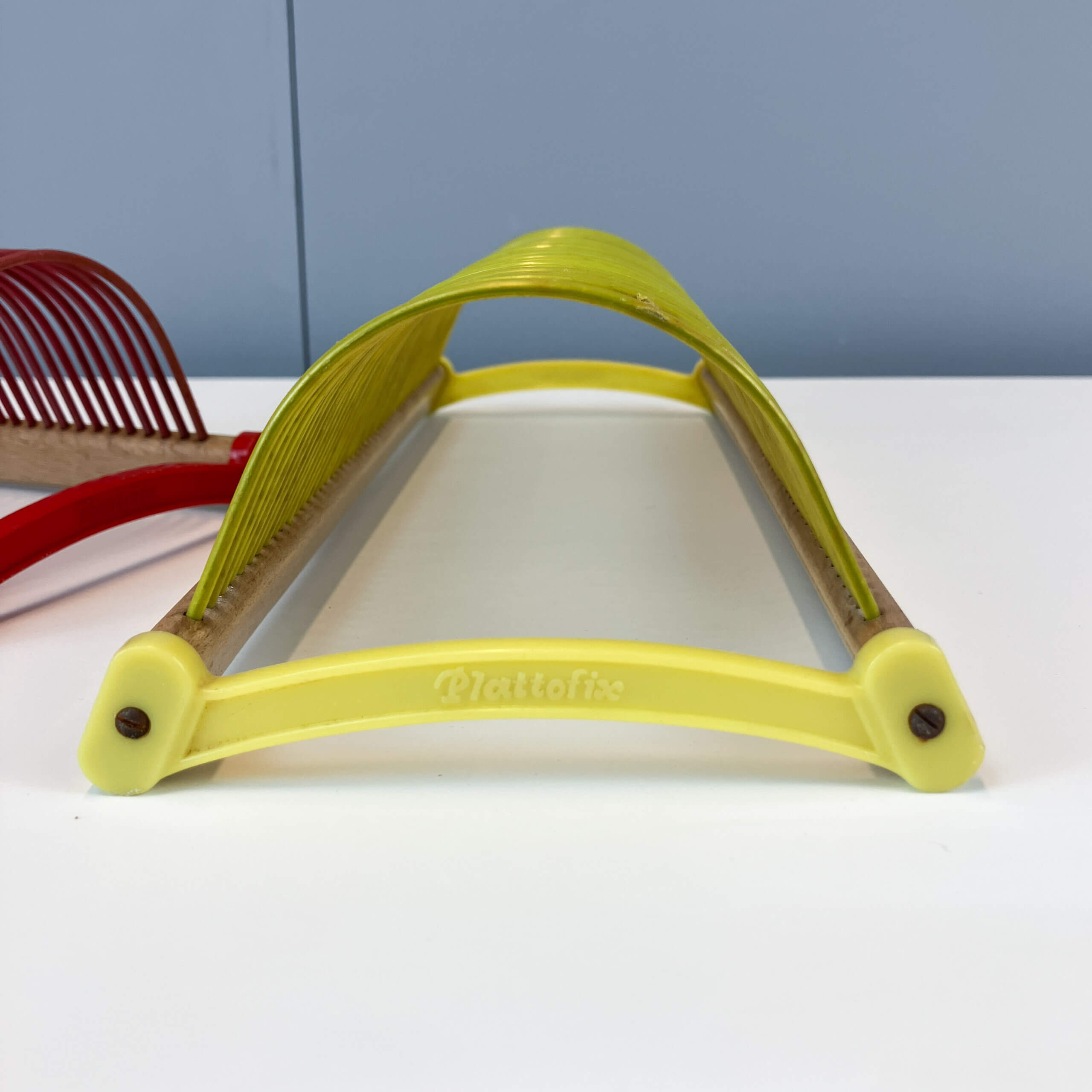 Stylish originals from the 70s: Plattofix record holders bring space-saving order to your vinyl collection. Two models in red and yellow, a look with character.
