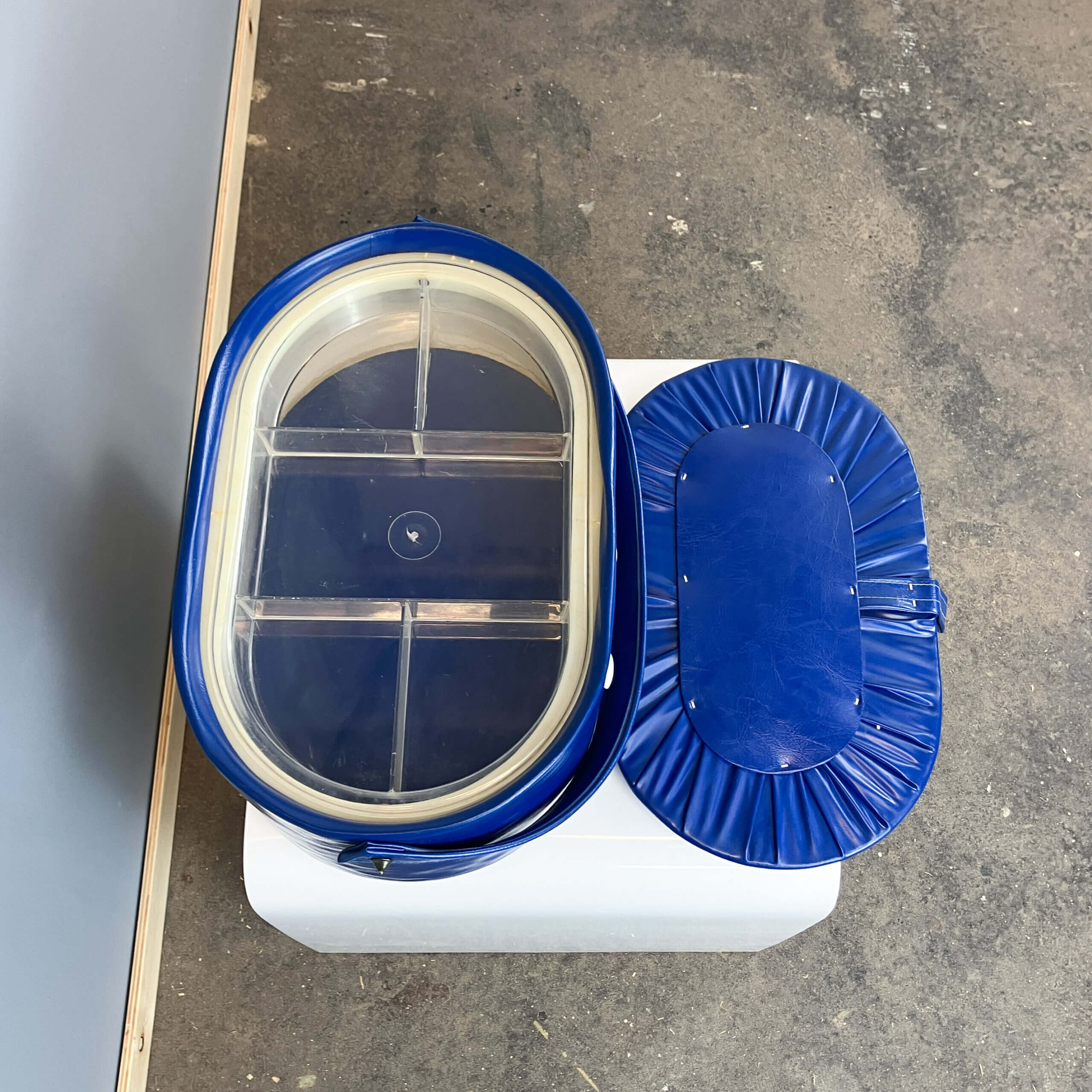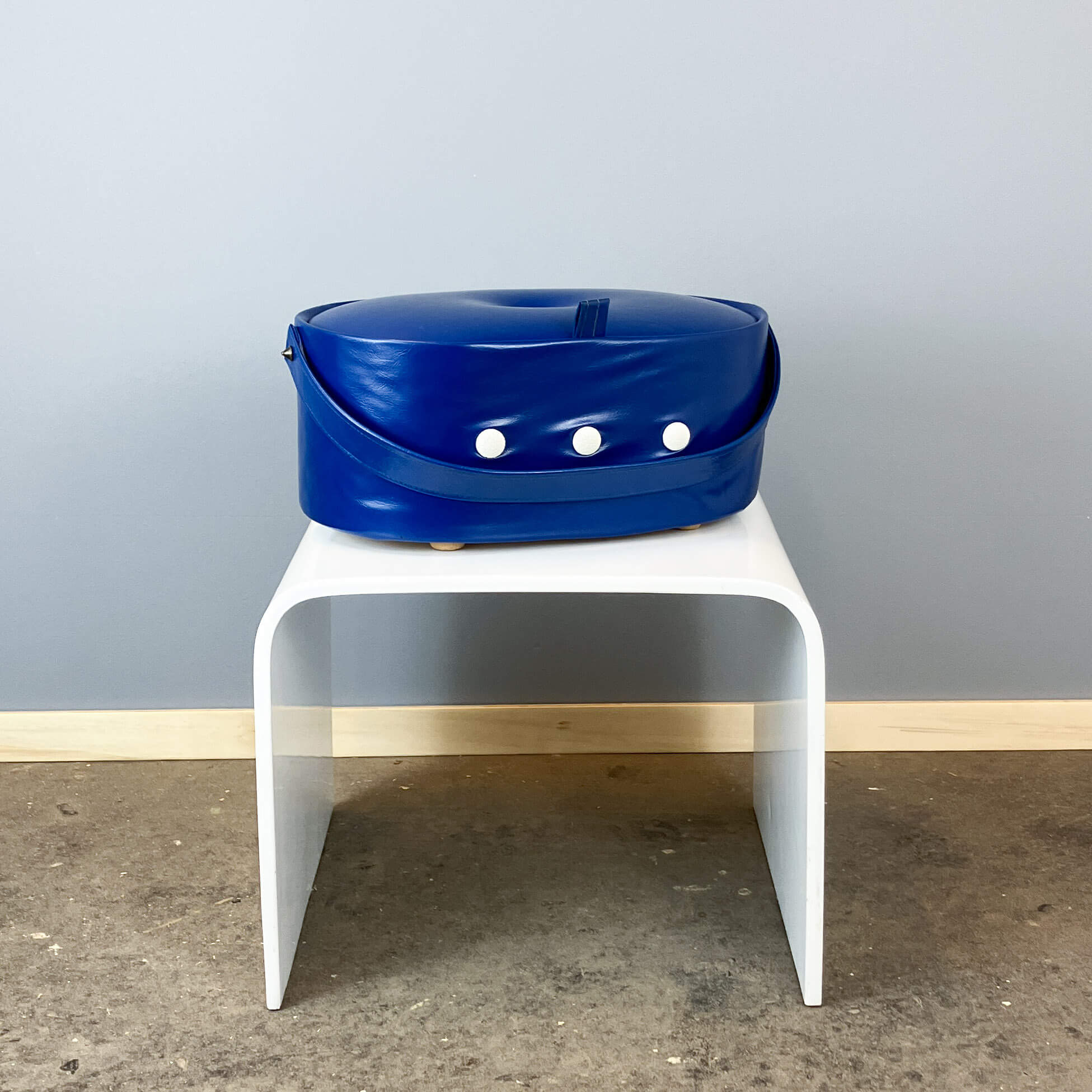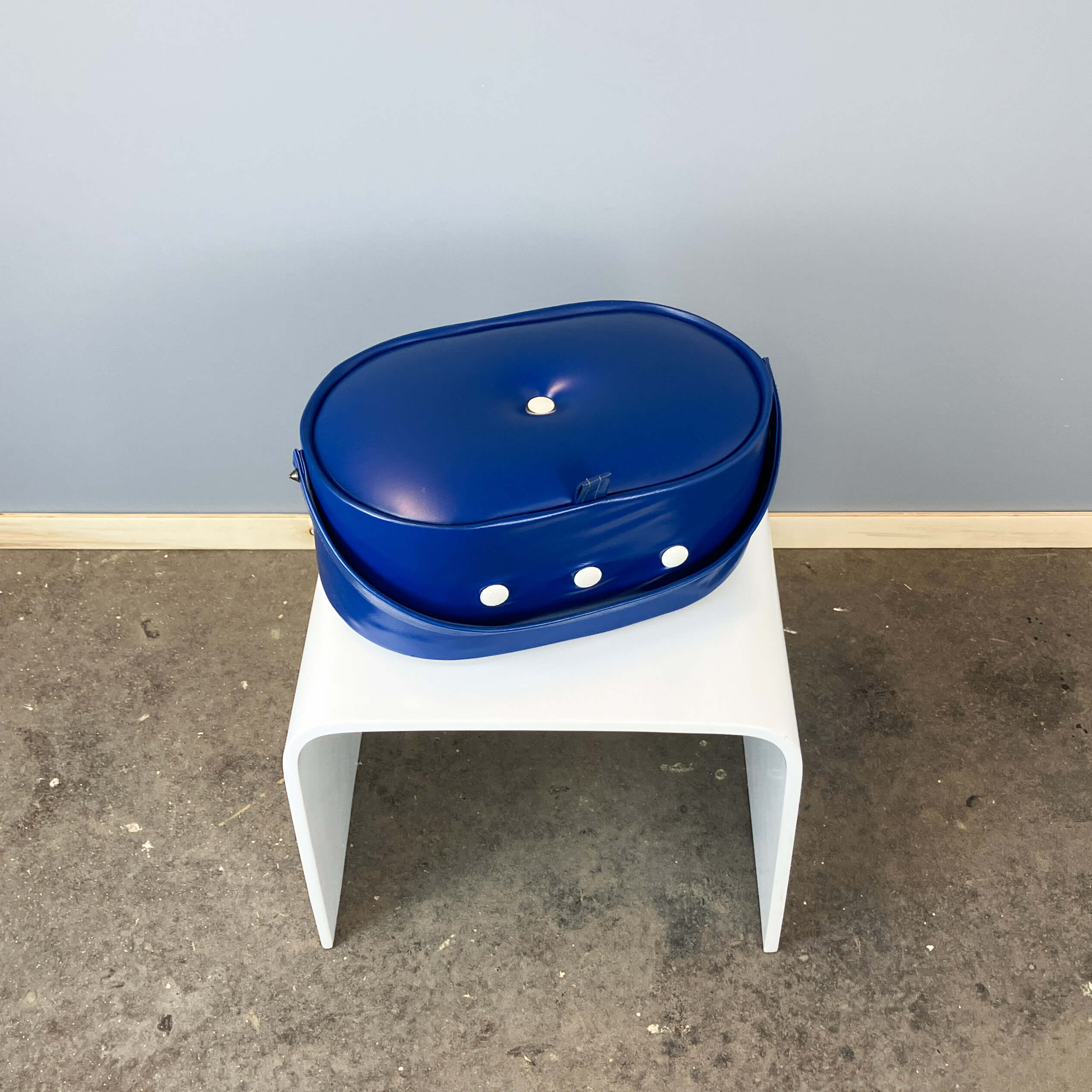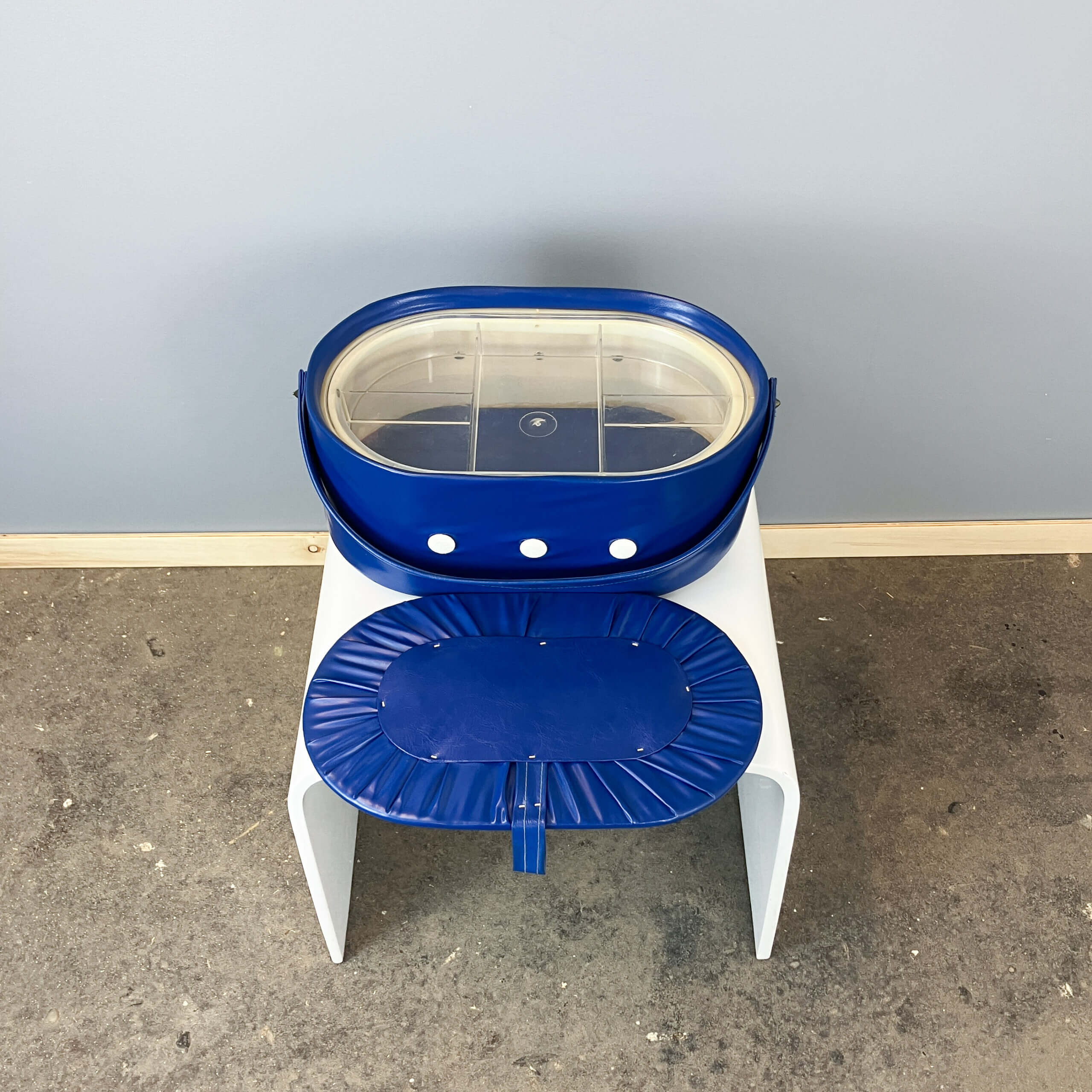 Stylish sewing box from the 70s – a real retro highlight in bold blue. The classic design and vintage charm make it an eye-catcher in any room.